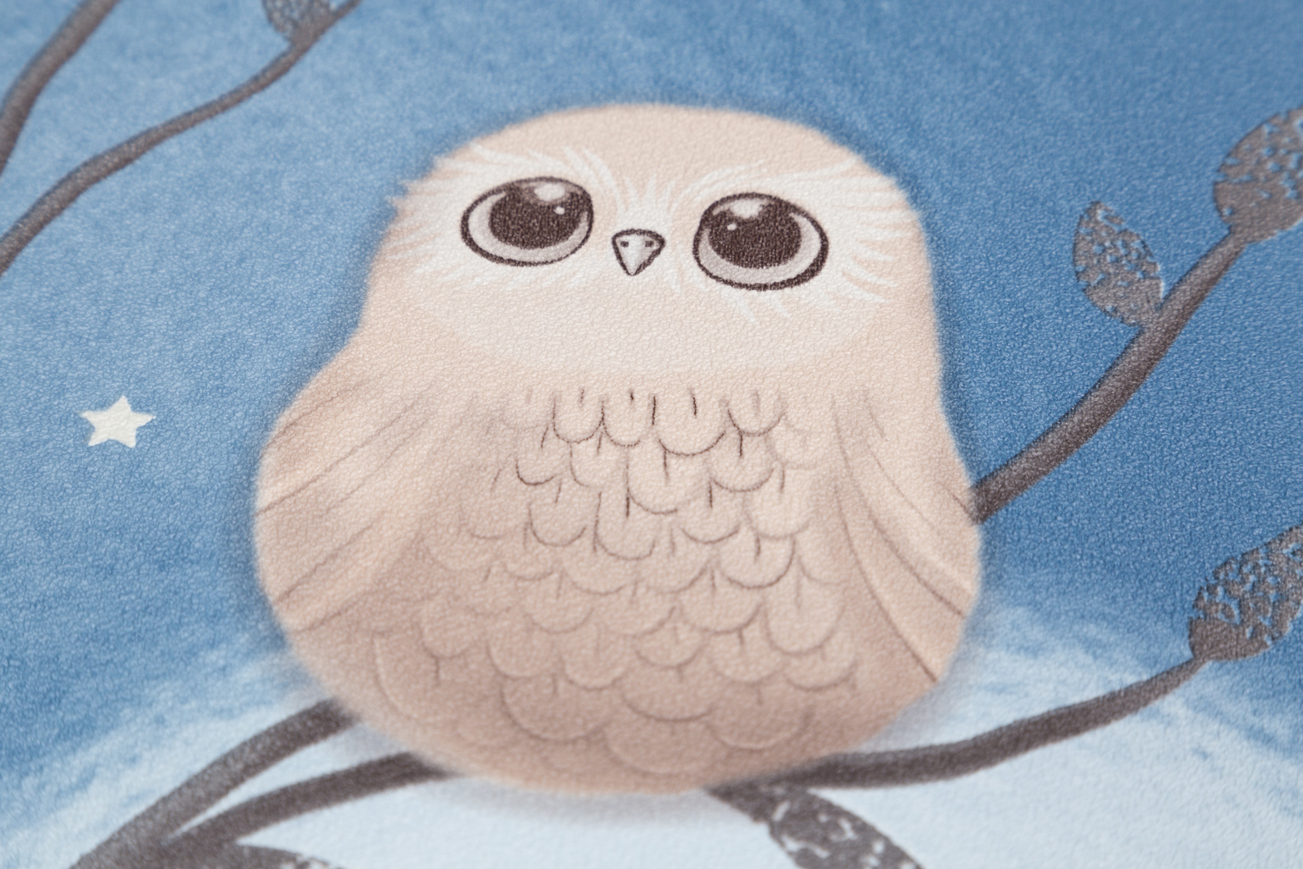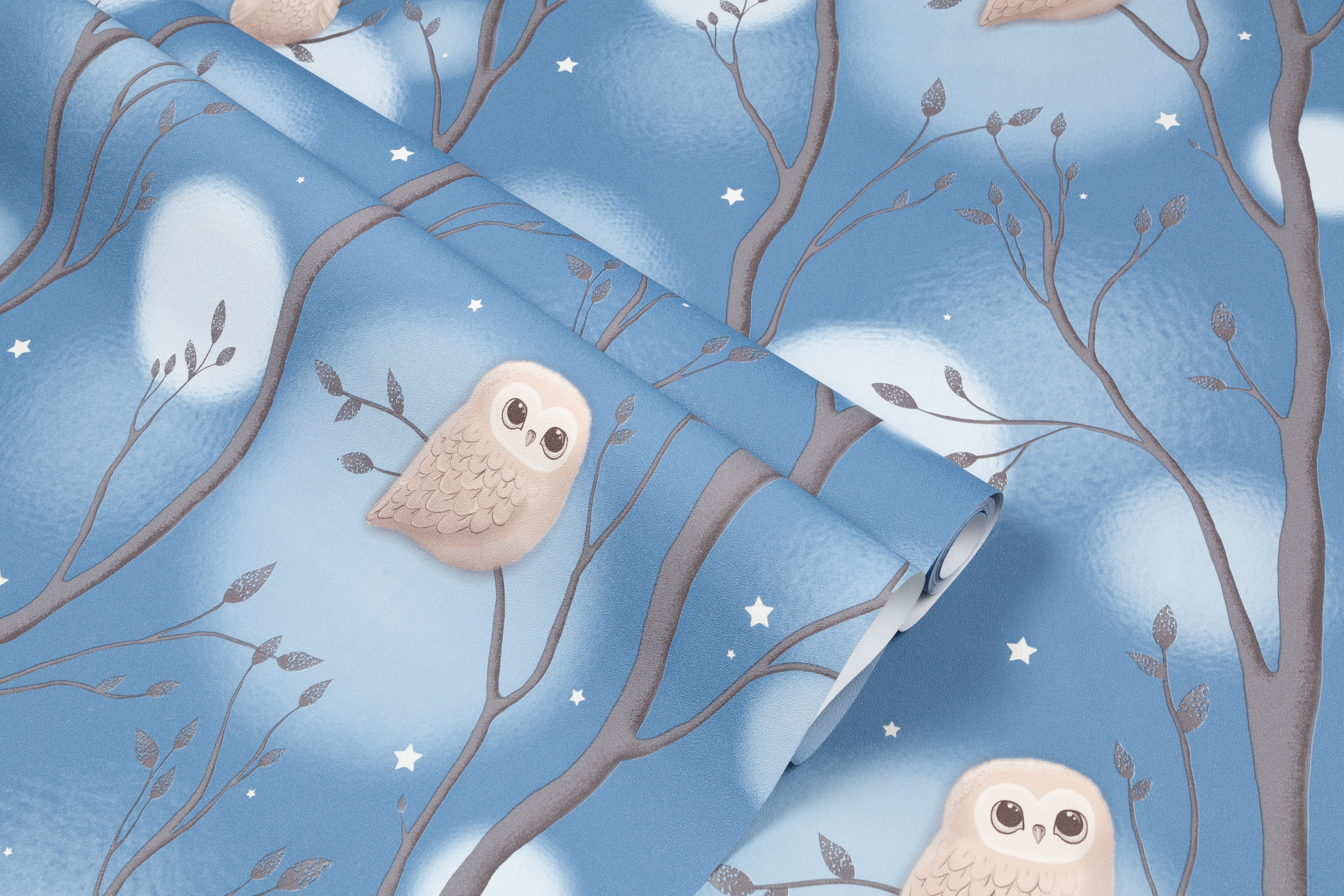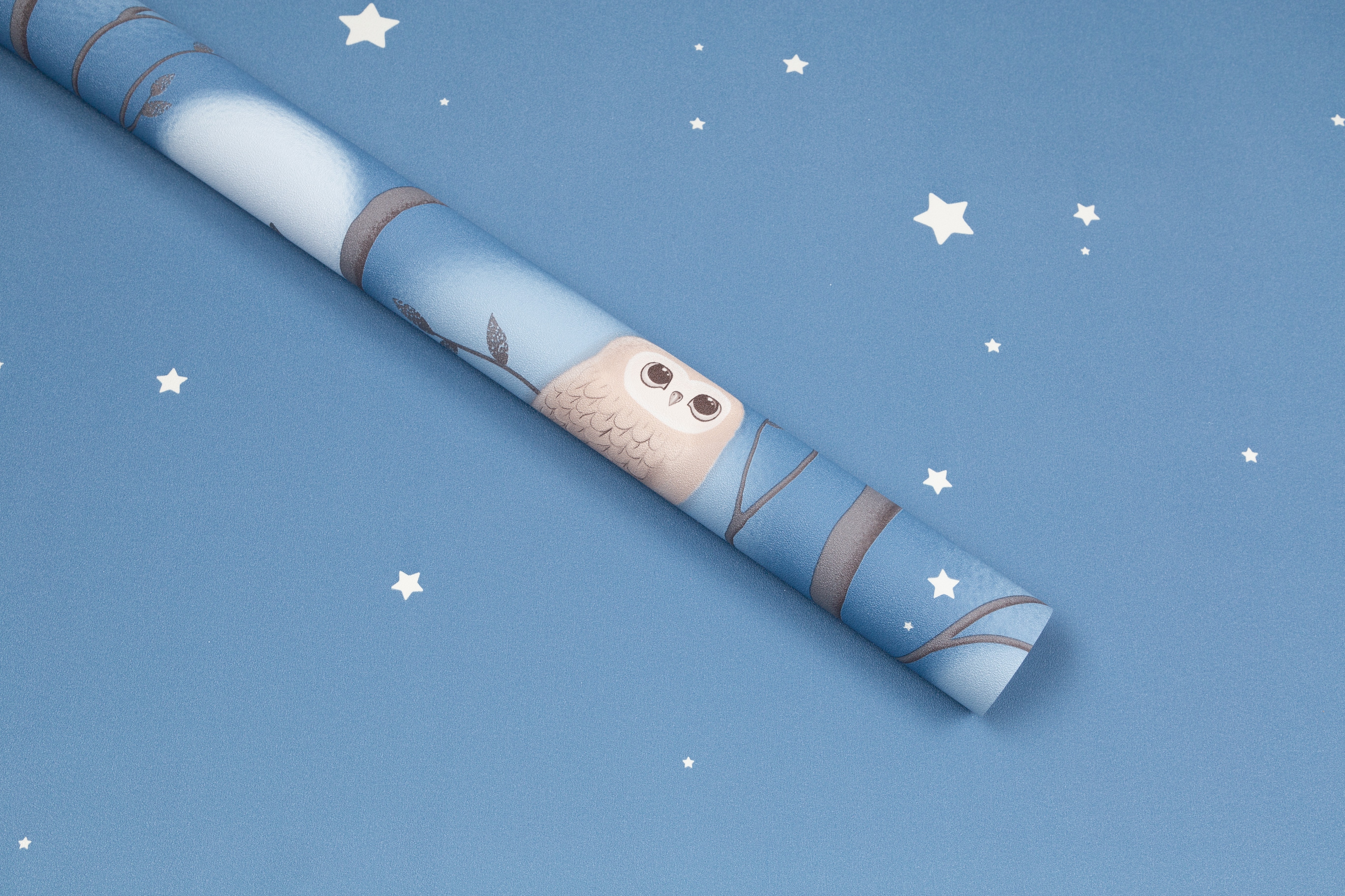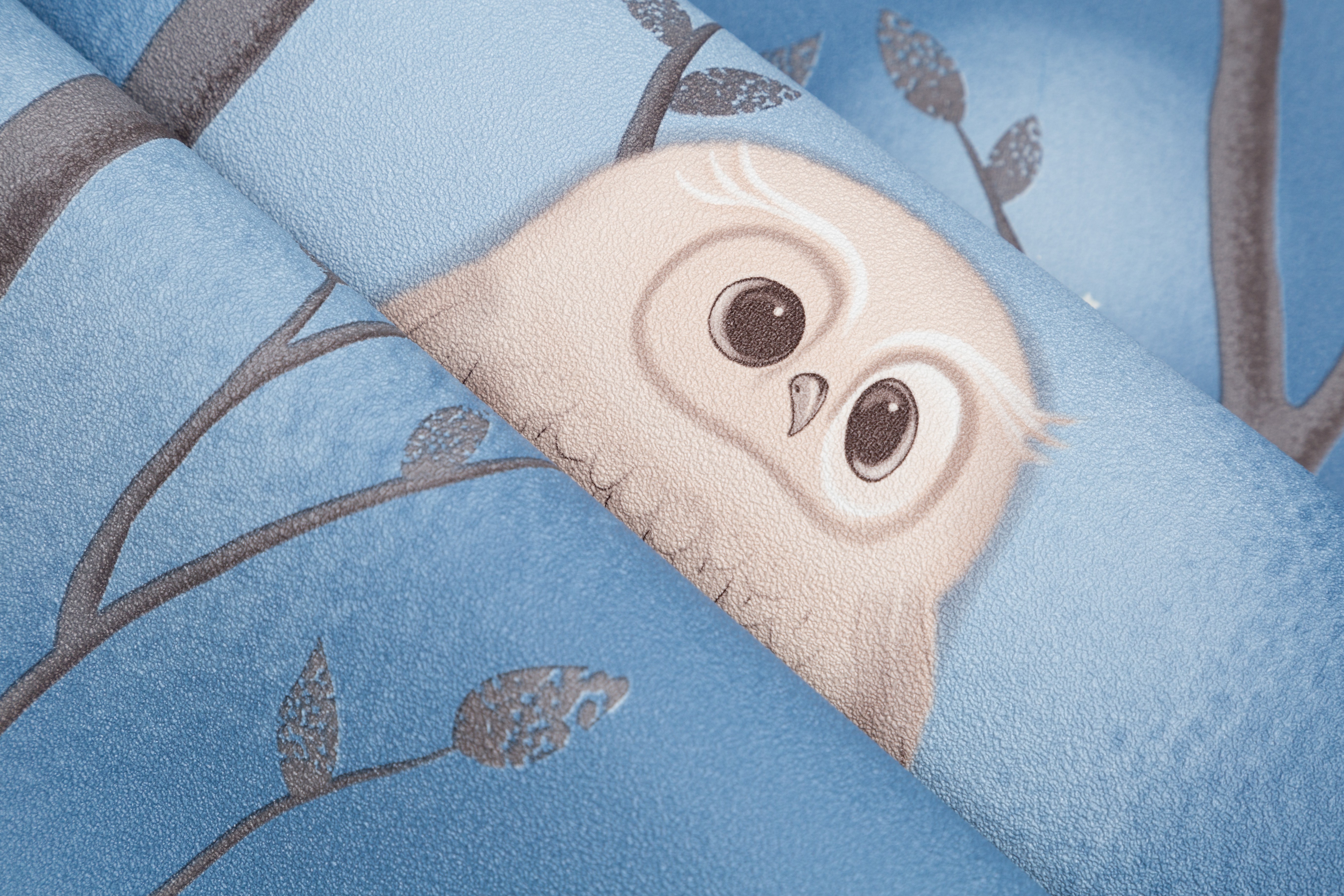 Dream - авторский сюжет для детей  Волшебное свечение в темноте¶Коллекция Dream уносит в сказочный мир детских мечтаний, где можно совершить фантастическое путешествие по чудесному лесу. Здесь живут милые и очаровательные совята, а веселые звездочки на мотиве и фоне волшебно светятся в темноте. Мимимишный эффект пушистости Пушистые воздушные шары-светлячки, которые мягко выплывают из туманной дымки, обволакивают пространство уютом. Они гармонично переплетаются с плавными ветвями деревьев и маленькими мультяшными совушками, образуя многоплановый рисунок. Мягкие уравновешенные цвета Сбалансированная палитра состоит из спокойных пастельных оттенков – устричного и моккачино. Они создают нейтральный фон в комнате и помогают лучше восстановить силы. А добавляют яркости и заряжают эмоциями энергичные ультрамариновый и васильковый. Трогательная бархатистая фактура Бархатистую поверхность обоев приятно рассматривать и гладить руками. Текстуру можно мыть влажной губкой, поэтому с нее легко удалить детские рисунки карандашом или фломастером. Фон клеится без подгона в любом направлении Компаньон со звездочками клеится без подгона и в любом направлении. А при оклеивании потолка компаньон превратится в красивое звездное небо. Обои напечатаны экологичными и безопасными материалами, имеется сертификат Роспотребнадзора.